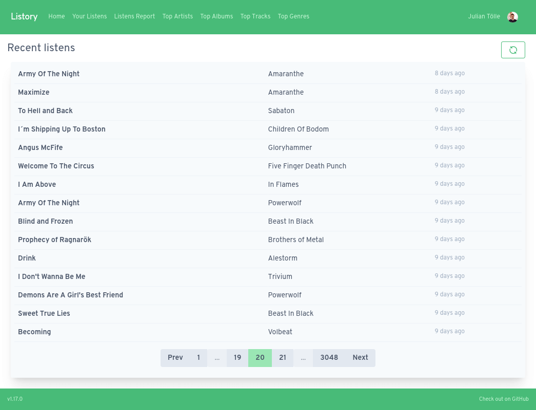 This will start Listory in the background. Checkout the docker compose documentation, to learn how you can work with the containers, for example to restart them or to read the logs.
